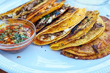 This viral wrap method involves cutting a slit in the tortilla adding ingredients to four sections, folding it into quarters, and grilling it.
